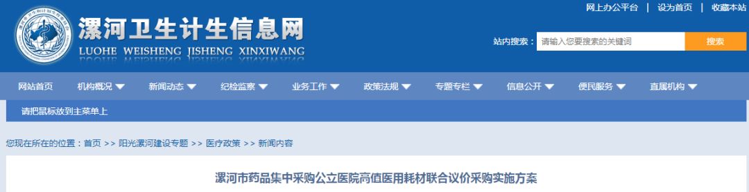 近日,漯河市衛(wèi)計委發(fā)布《漯河市藥品集中采購公立醫(yī)院高值醫(yī)用耗材聯(lián)合議價采購實施方案》(以下簡稱《方案》)。