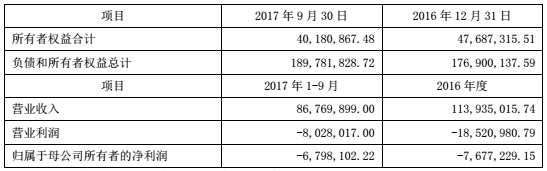 蘇州天隆公司2016年度及2017前三季度模擬合并主要財務(wù)指標