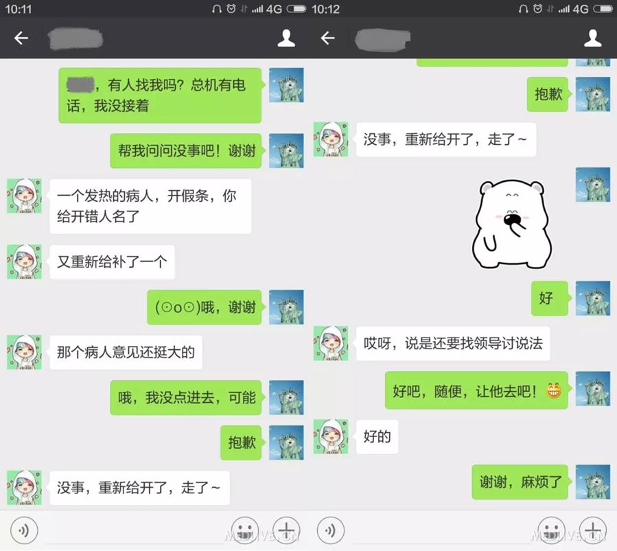 講我曾經(jīng)給患者開假條的時(shí)候由于操作失誤,導(dǎo)致沒有選定患者,點(diǎn)右鍵開具診斷證明后,名字錯(cuò)誤?;颊咭矝]仔細(xì)看,拿回家發(fā)現(xiàn)錯(cuò)誤后義憤填膺返回。當(dāng)班醫(yī)生幫忙重新開具診斷證明后,患者仍舊不依不饒,于是我被投訴了……由于多次被投訴,臉皮已經(jīng)很厚了,稍微氣了一會(huì)兒就不生氣了。