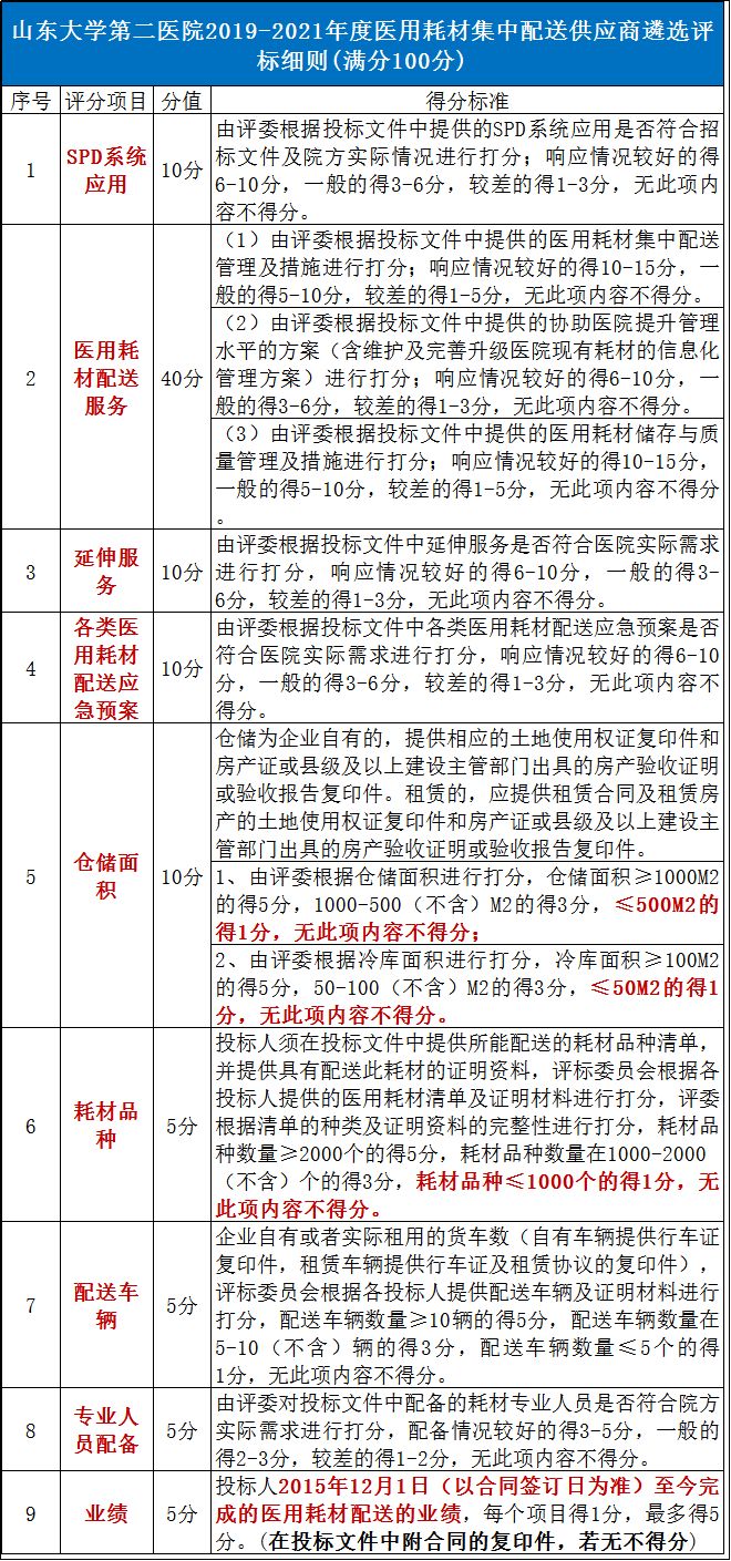 但此次遴選標(biāo)準(zhǔn)中,更值得關(guān)注,同時分值也更高的是:SPD模式、耗材配送服務(wù)。這兩項占據(jù)近一半分值!
