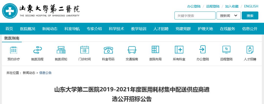 12月4日,山東大學(xué)第二醫(yī)院發(fā)布《2019-2021年度醫(yī)用耗材集中配送供應(yīng)商遴選公開招標(biāo)公告》(以下簡稱《公告》)。