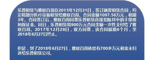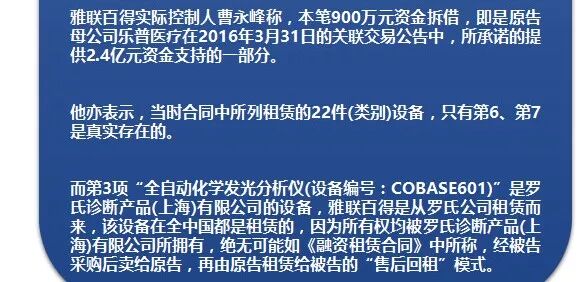 這一糾紛的關(guān)鍵在于:樂普租賃指控雅聯(lián)百得拖欠其租賃設(shè)備資金不償還,而雅聯(lián)百得卻認(rèn)為已付900萬為樂普租賃母公司承諾給予其2.4億元支持資金的一部分,并且認(rèn)為“名為融資實(shí)為借貸,合同中所列的大部分融資租賃標(biāo)的物是不存在的”。