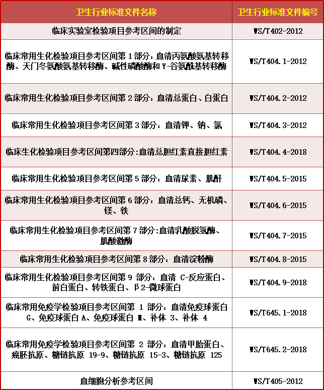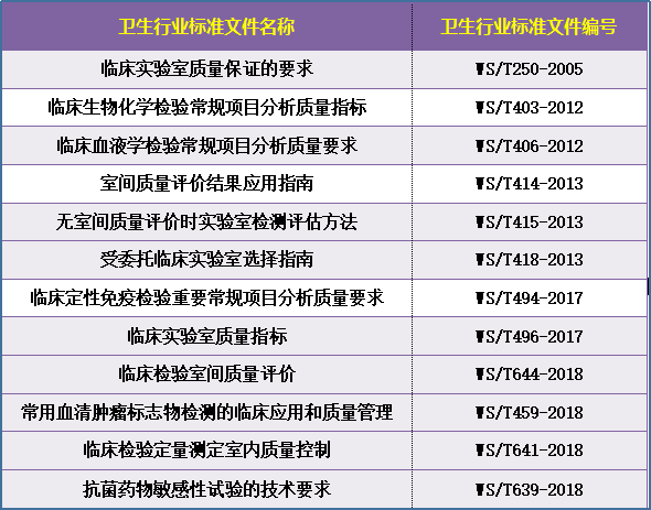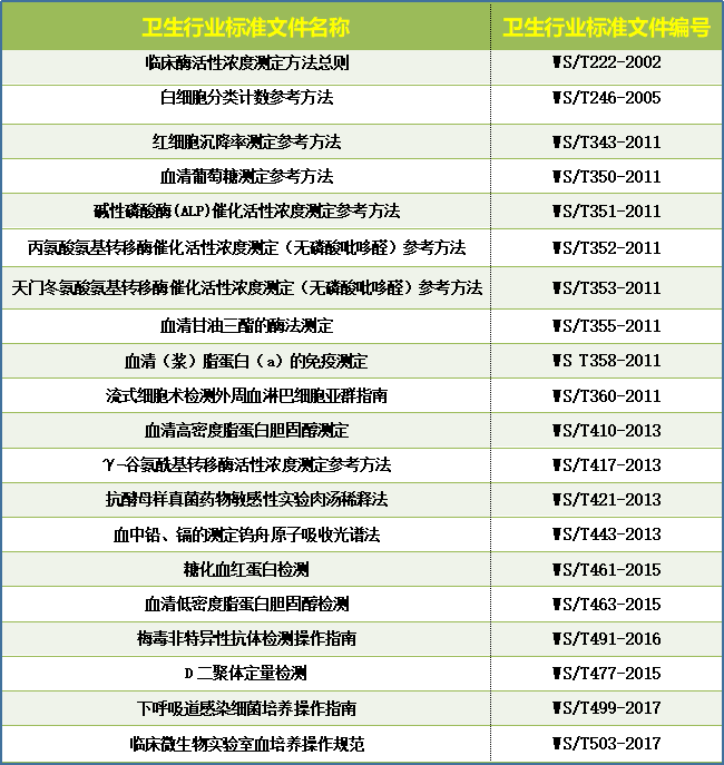 臨床檢驗行業(yè)主要衛(wèi)生標準分類(新)