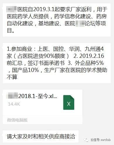 看了下具體通知,內(nèi)容大意是,從3月1日起要求廠家返利,用于藥學(xué)信息化建設(shè)和藥房自動(dòng)化建設(shè)等項(xiàng)目,參加的商業(yè)公司有4家,需要在2月16日前匯總信息,簽訂書面承諾書,大致返利點(diǎn)數(shù)如前所述,并且,生產(chǎn)廠家在醫(yī)院的學(xué)術(shù)贊助不能計(jì)算在內(nèi)。