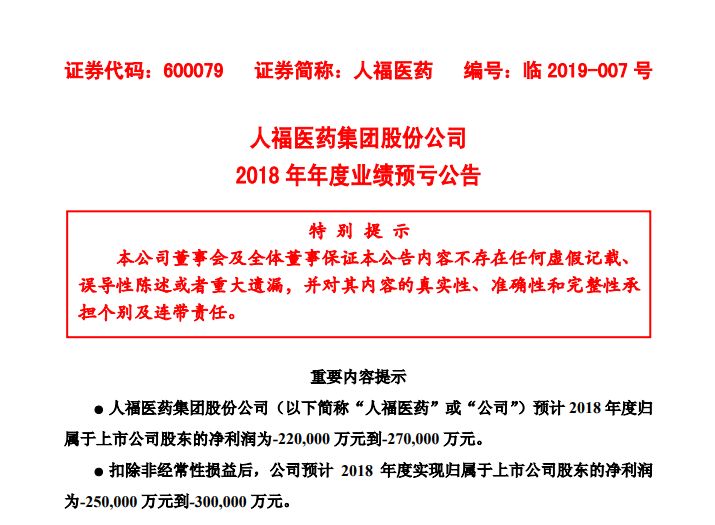 1月29日 ,人福醫(yī)藥公布了2018業(yè)績預(yù)告,公司預(yù)計(jì)虧損27億,計(jì)提商譽(yù)減值30億元!而這次也是人福醫(yī)藥自1997年上市21年來**虧損!公司發(fā)生大額虧損主要是因商譽(yù)減值損失的一次性影響造成!