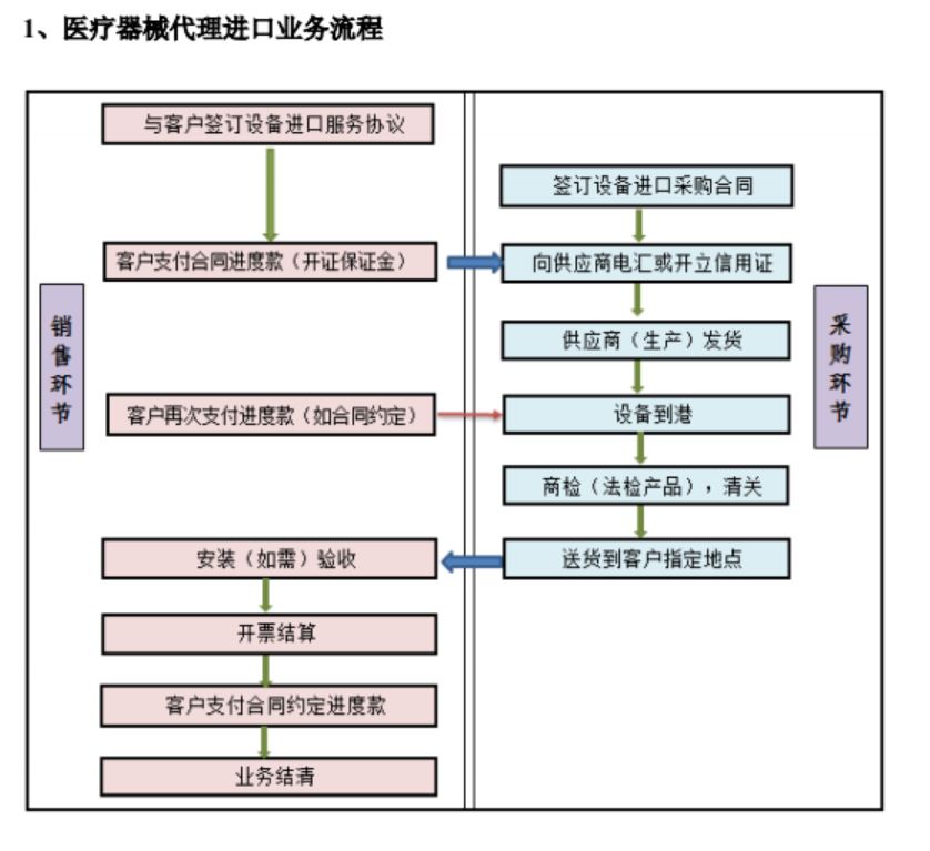 從其代理進口業(yè)務(wù)流程可以看到,中富泰科并不是簡單的一買一賣銷售業(yè)務(wù),根據(jù)客戶需求尋找設(shè)備供應(yīng)商,如何讓產(chǎn)品從海外或者從工廠出來直到進入醫(yī)院的整個環(huán)節(jié),中間不會耽擱,從境外采購、入境安檢、安裝,憑借對醫(yī)療器械行業(yè)的理解和服務(wù)能力,在業(yè)務(wù)過程中充當供應(yīng)鏈管理角色。難怪不需要核心技術(shù)人員!